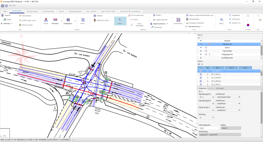 Mit dem Planungswerkzeug CROSSIG von GEVAS software können Verkehrsingenieure Steuerungen für Lichtsignalanlagen projektieren, testen und qualitätsgesichert versorgen.